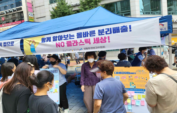 군포시 알뜰나눔장터는 1회용품 없는 행사로 운영해 물건을 구매할 사람들은 장바구니를 가지고 오는 것이 좋다.
