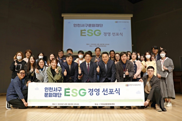 이종원 대표이사는 “서구문화재단 ESG 경영은 미래세대를 위한 환경 조성, 예술인 성장 및 지원, 구민과의 소통 다각화 등 문화재단의 궁극적인 목표와 같이하고 있다”며 “환경·사회·거버넌스 등 경영 차원의 전사적인 혁신으로 문화공감으로 감동과 행복이 공존하는 서구를 완성하겠다”고 전했다.