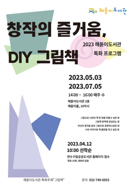 [금요저널] 연수구립 해돋이도서관은 다음달 3일부터 7월 5일까지 10주에 걸쳐 2023 그림책 특화 서비스 ‘창작의 즐거움, DIY 그림책’ 프로그램을 운영한다.