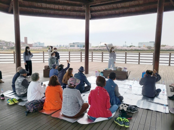 [금요저널] 안산시 단원보건소 치매안심센터는 지난 4일 벚꽃 명소인 화랑유원지에서 ‘너도나도 마음힐링’ 이란 주제로 치매 환자와 가족이 함께하는 힐링 프로그램을 진행했다고 6일 밝혔다.