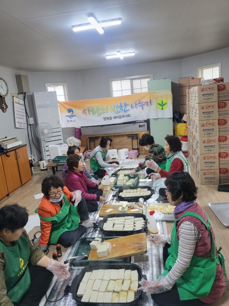 청북읍 새마을부녀회는 기업체와 개인의 후원을 받고 부녀회원들이 헌 옷과 물품을 판매한 수익금으로 매월 1회 ‘사랑의 밑반찬’을 만들어 어려운 이웃에게 직접 전달하는 등 나눔 실천에 앞장서고 있다.