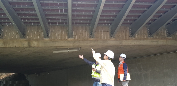 특히 보도가 설치된 교량의 경우 사고 발생 시 직접적인 인명 피해가 발생할 우려가 큰 만큼 교량 보도 구간 하부의 균열 상태, 상부 접속부의 누수 상태 등 하중에 의한 시설물의 초기 거동 상태를 중점적으로 점검했으며 교량 구조물에 영향을 줄 수 있는 주변 시설물도 면밀히 살펴봤다.