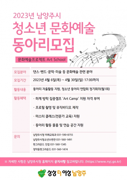 남양주시, 2023년 청소년 문화예술동아리 아트스쿨 운영