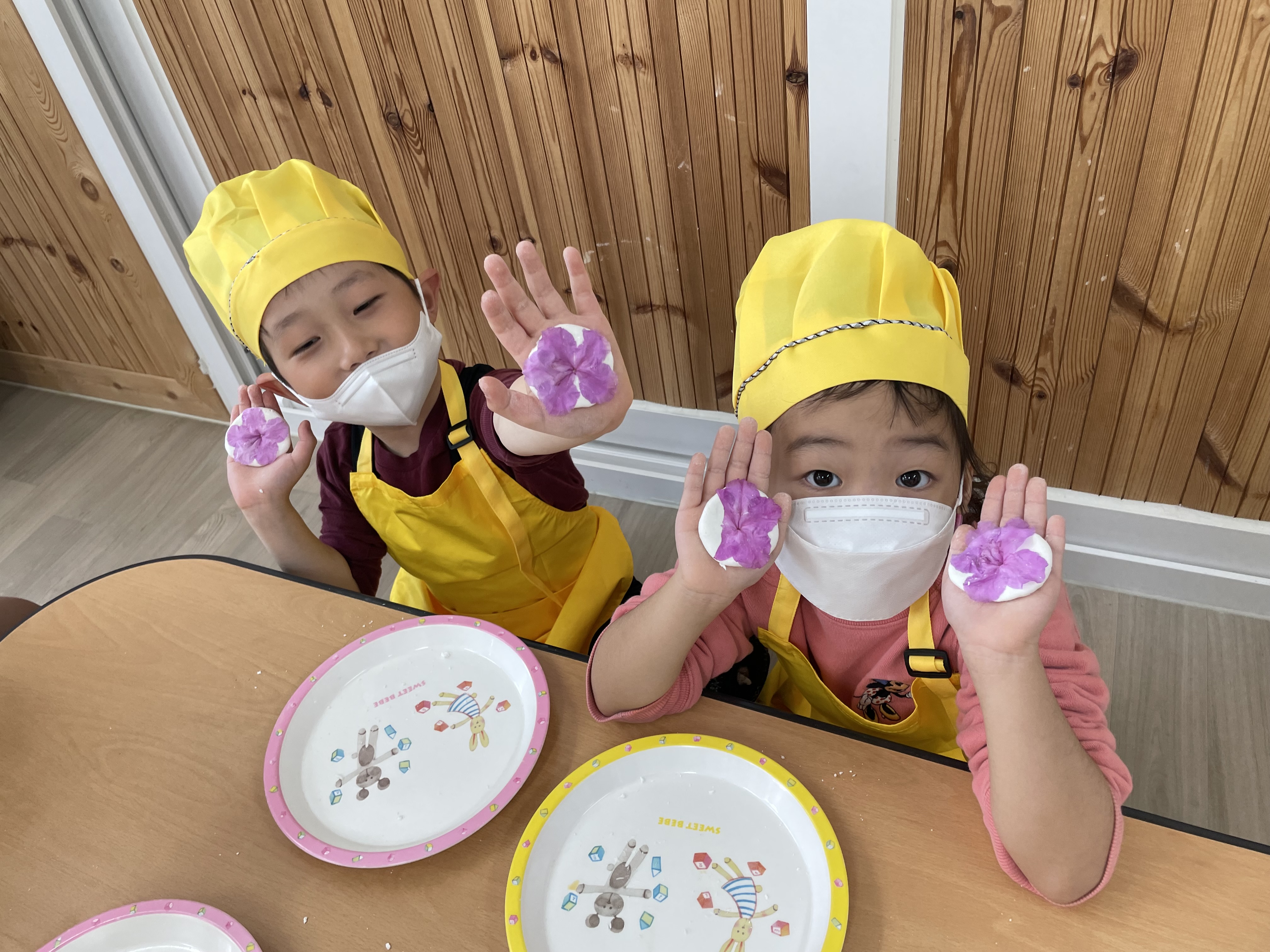 □ 화전을 만들어 맛을 본 아이들은 “꽃을 내가 먹었다니 너무 신기해요.”, “예쁜 꽃을 먹으니 더 맛있는 거 같아요.”라며 즐거워했다.