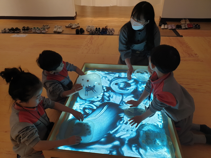 □ 이날 유아들은 심리・정서 치유 활동 행복감증진을 위해 샌드작품 관람, 명화체험, 감성체험을 하였다