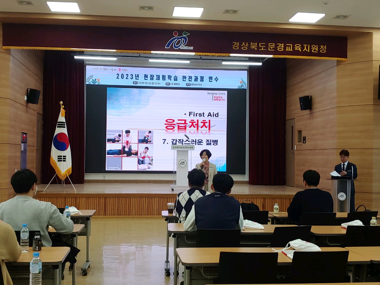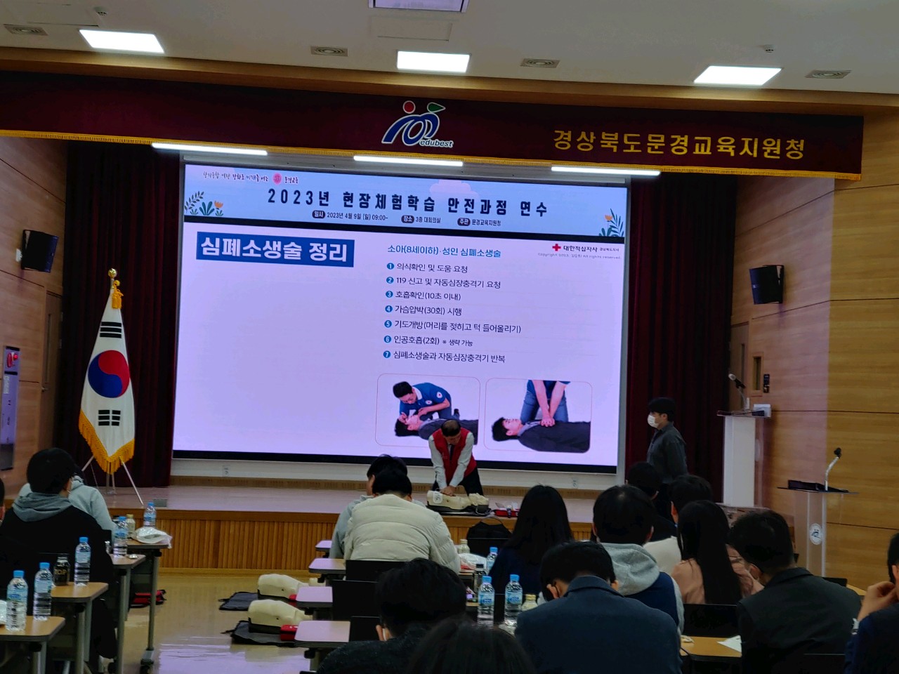 □ 대한적십자회 경북지사에서 강사를 초청해 이루어진 이번 연수에서는 심폐소생술에 대한 이론과 실습, 기도폐쇄 등의 응급상황별 대처요령, 상처처치 교육 등을 실시, 현장체험 학습에서 발생할 수 있는 안전 능력을 기르기로 했다.
