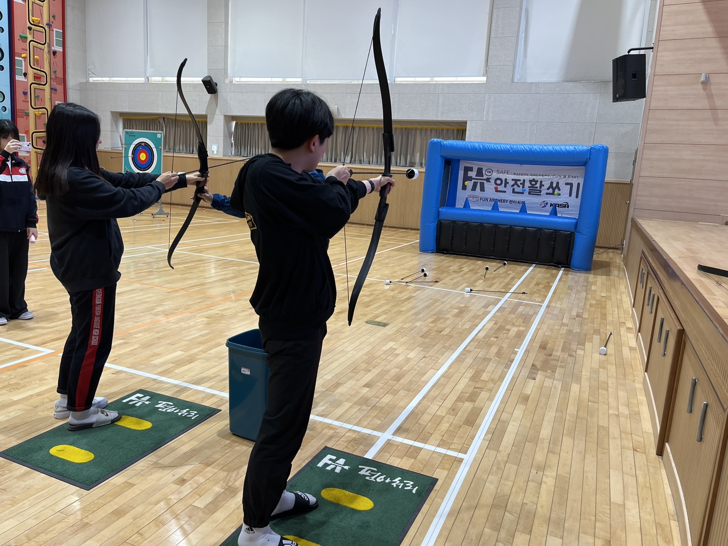 □ 첫날 점심 식사 후 학생들은 활쏘기‘미션활동’과 AR 액션 플로어, VR 메타 퀘스트 등의 첨단 장비를 활용한 미래형 가상 스포츠를 체험하였으며, 이후 ‘장기자랑’에서는 평소에 갈고 닦은 다양한 장기를 선보이며 자신의 끼와 재능을 마음껏 펼치는 시간을 보냈다.