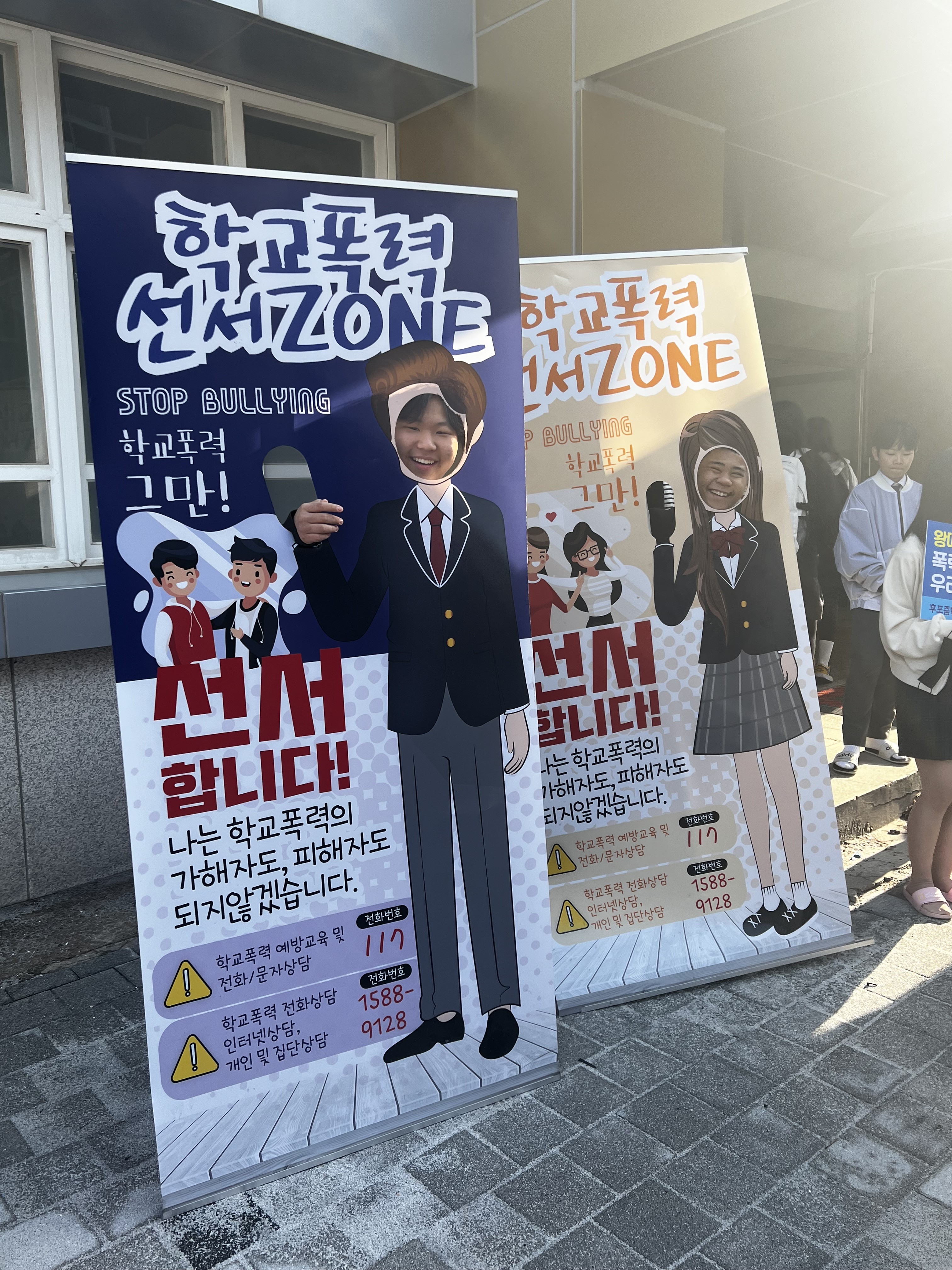 □ 이번 캠페인은 학교폭력 예방 프로그램 중 하나로 학생회 대의원의 주관으로 캠페인이 진행되었다. 학교폭력예방을 위한 음악이 울려퍼졌고 대의원 학생들은 피켓을 들고 학교폭력 예방을 위한 구호를 외치며 학교폭력에 대한 경각심을 제고하였다. 또한 학교폭력 없는 안전한 학교 문화를 정착하기 위해 전 교직원이 함께 캠페인에 참여하여 예방을 위해 힘썼다.