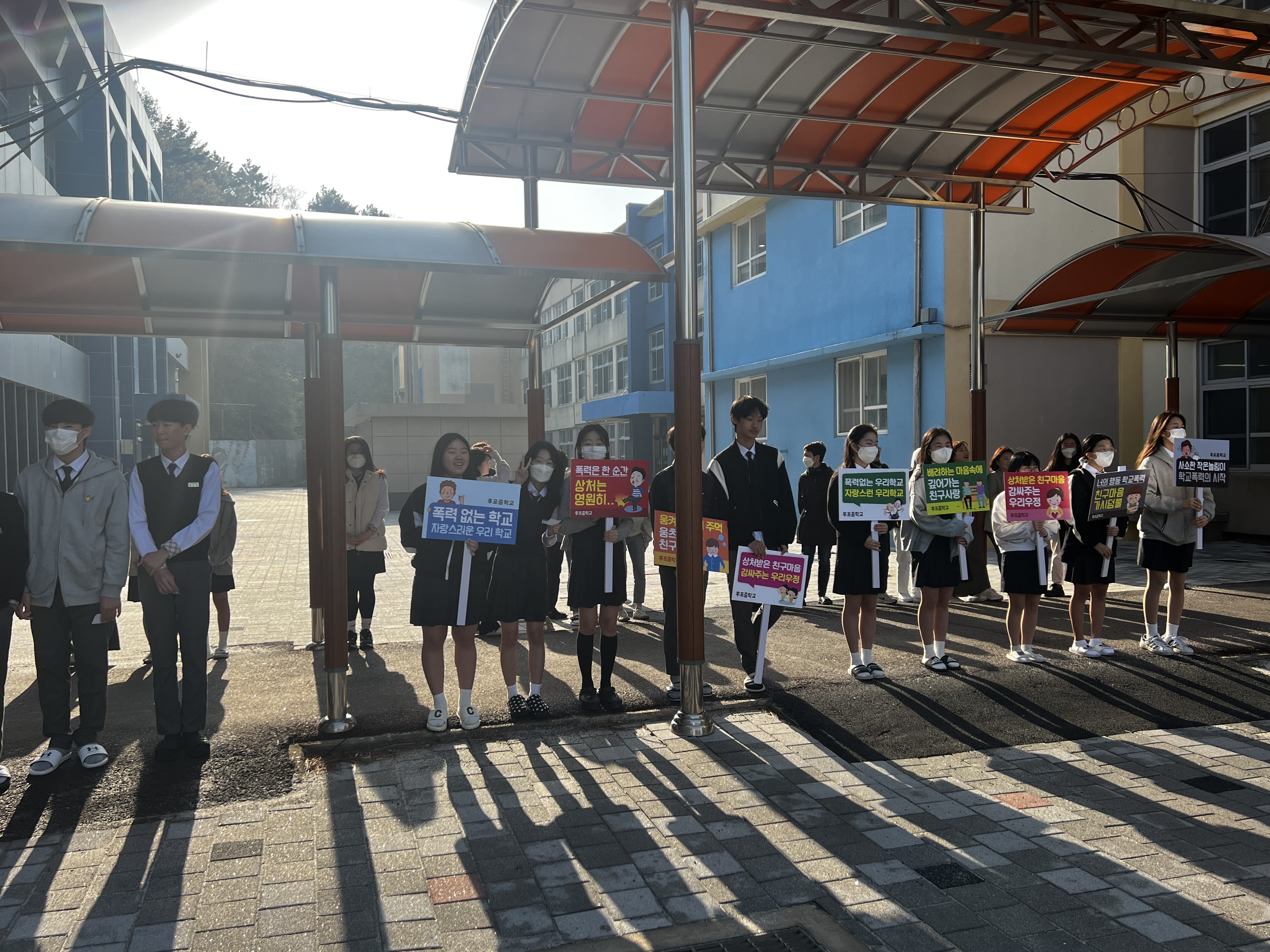 □ 후포중학교(교장 허염)는 2023. 4. 7.(금) 학생들과 교직원을 대상으로 후포중학교 후문에서 2023학년도 학교폭력예방 캠페인을 개최하였다.
