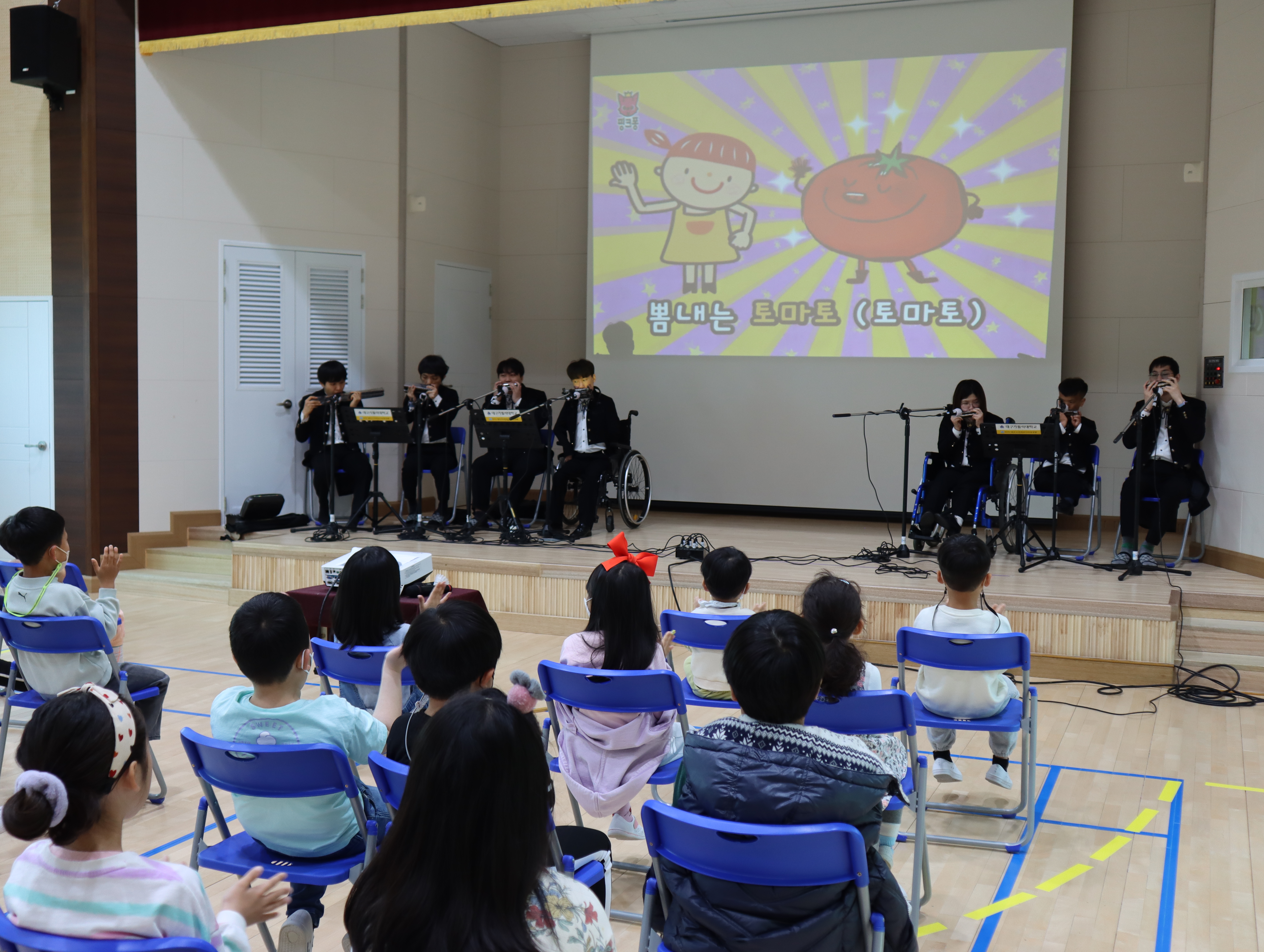 이에 학교는 따뜻한 봄향기가 가득한 4월에 장애 공감 실천 주간에 앞서 DCU 맑은소리 하모니카 앙상블 공연단을 초청하여 아름다운 음악과 함께 몸과 마음이 따뜻해지는 시간을 가지고자 이번 기회를 마련하였다.