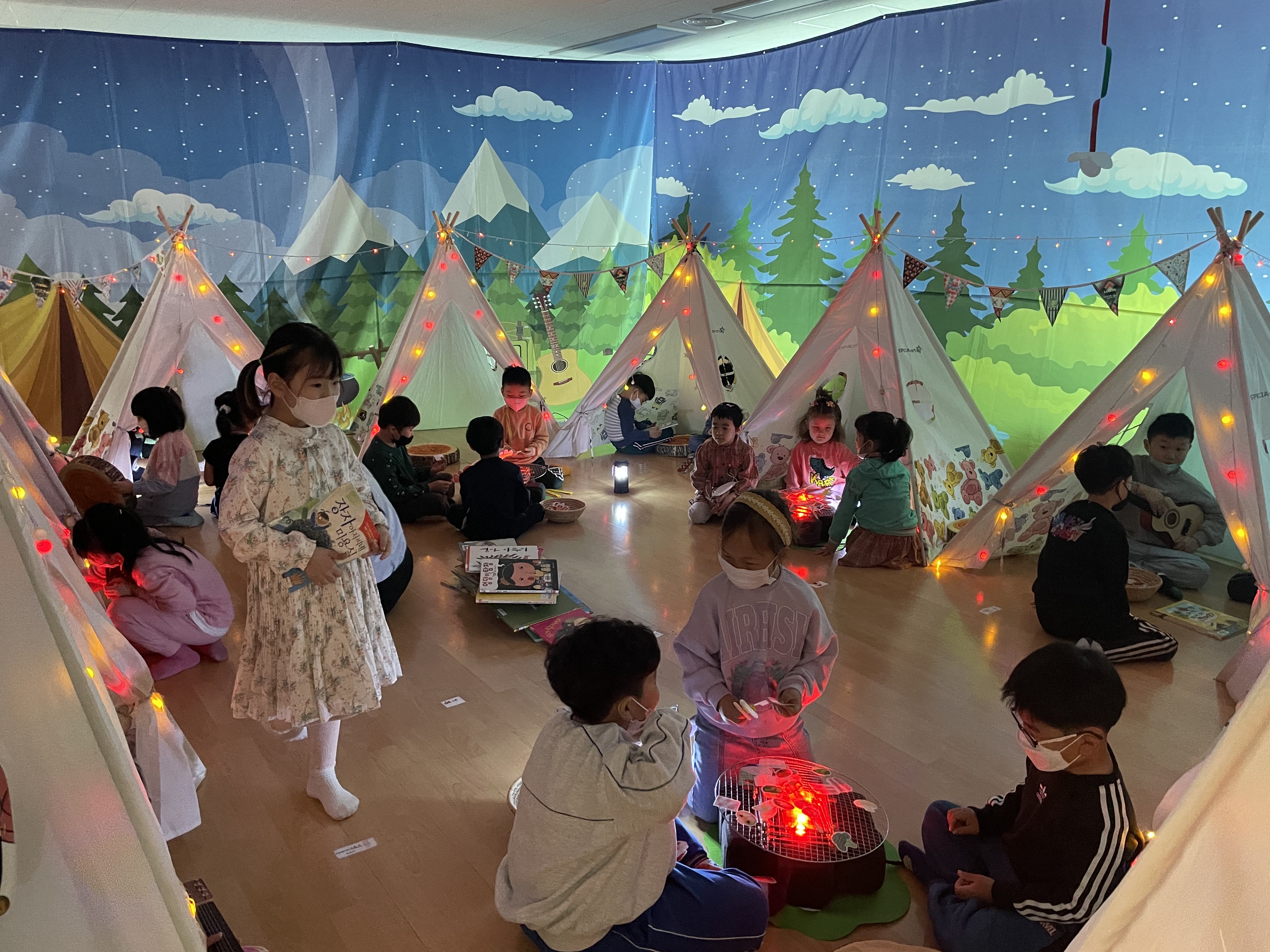 □ 진량초등학교병설유치원 만 5세 유아 조○○는 “초등학교 형님들이 책을 재미있게 읽어주어서 신이 났어요. 진짜 캠핑장에 온 것 같아요.”라고 말하며 즐거운 기분을 전했다.