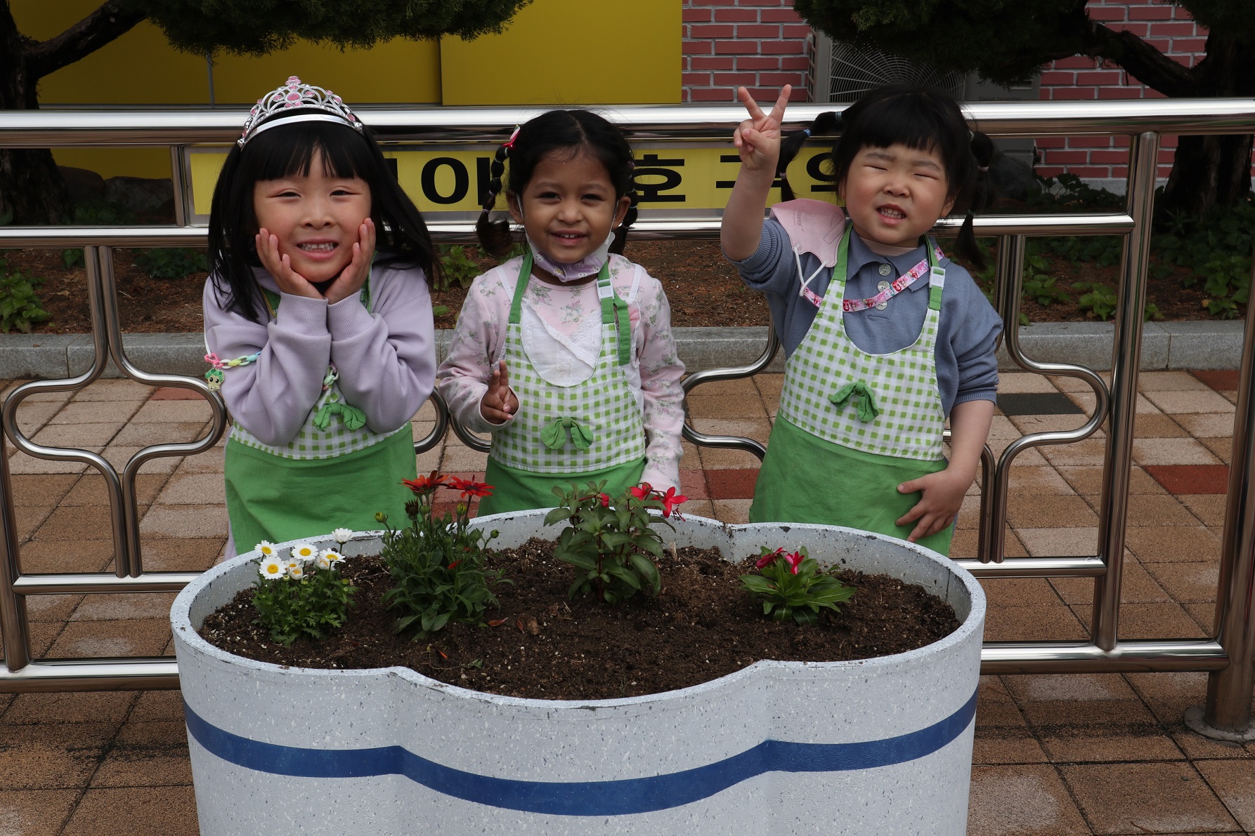 □ 놀이 주제인‘봄과 꽃놀이’ 활동의 하나로 실시한 이번 봄 꽃 심기 체험을 위하여 유아들은 먼저, 교실에서 봄에 대하여 이야기를 나누며 봄은 어떤 계절인지, 봄에 피는 꽃들은 어떤 것이 있는지를 함께 알아본 후 초등학교 마당의 대형 화분에 준비한 꽃모종을 옮겨심는 순서로 이루어 졌다.