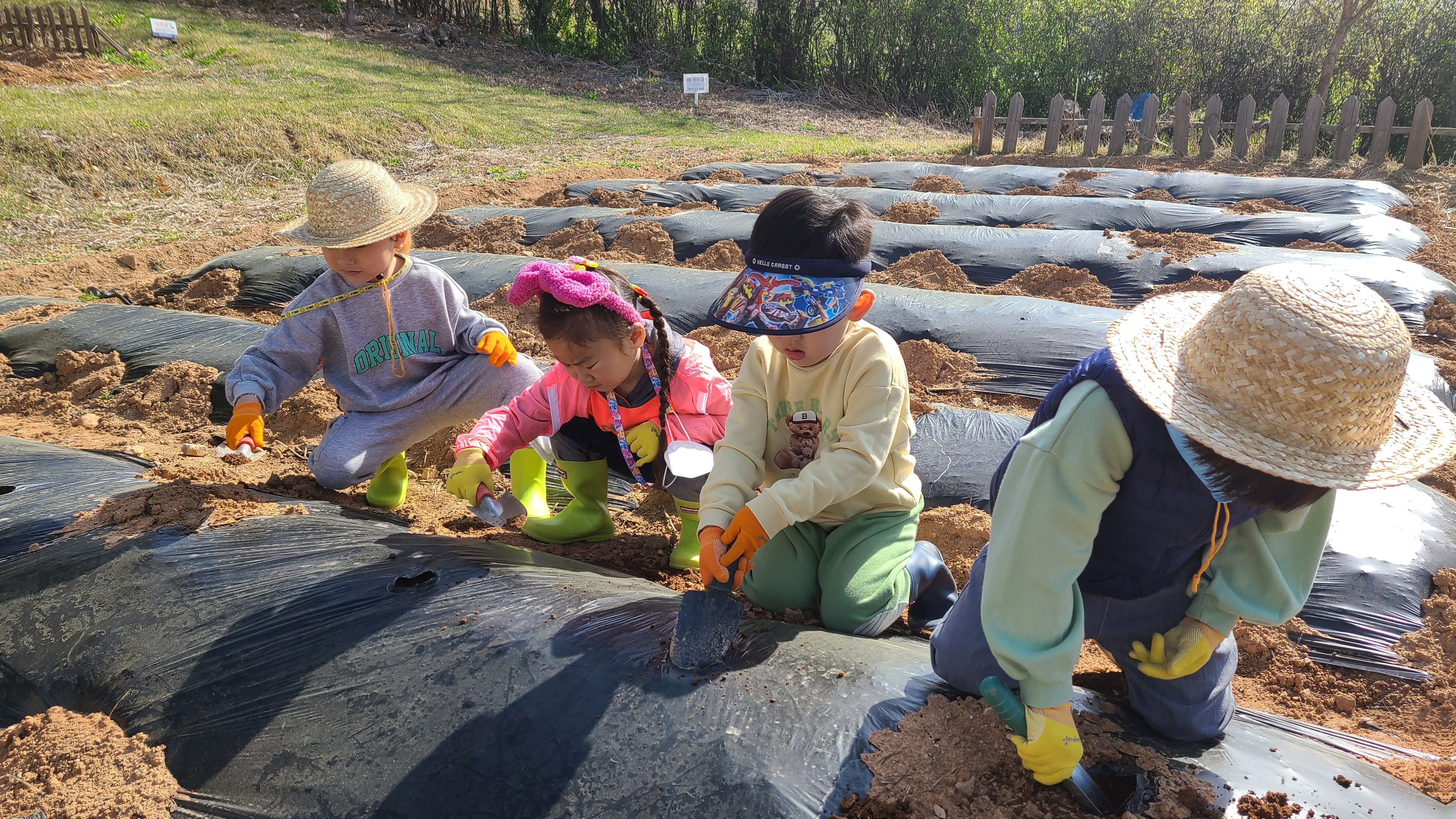 □ 텃밭 가꾸기 활동은 미래교육이 요구하는 환경·생태교육을 실천하기 위한 활동의 일환으로 유아들이 자연 친화적 체험활동을 통해 자연과 생명을 존중하는 생태감수성을 갖춘 생태시민으로 자라나도록 실시하였다.