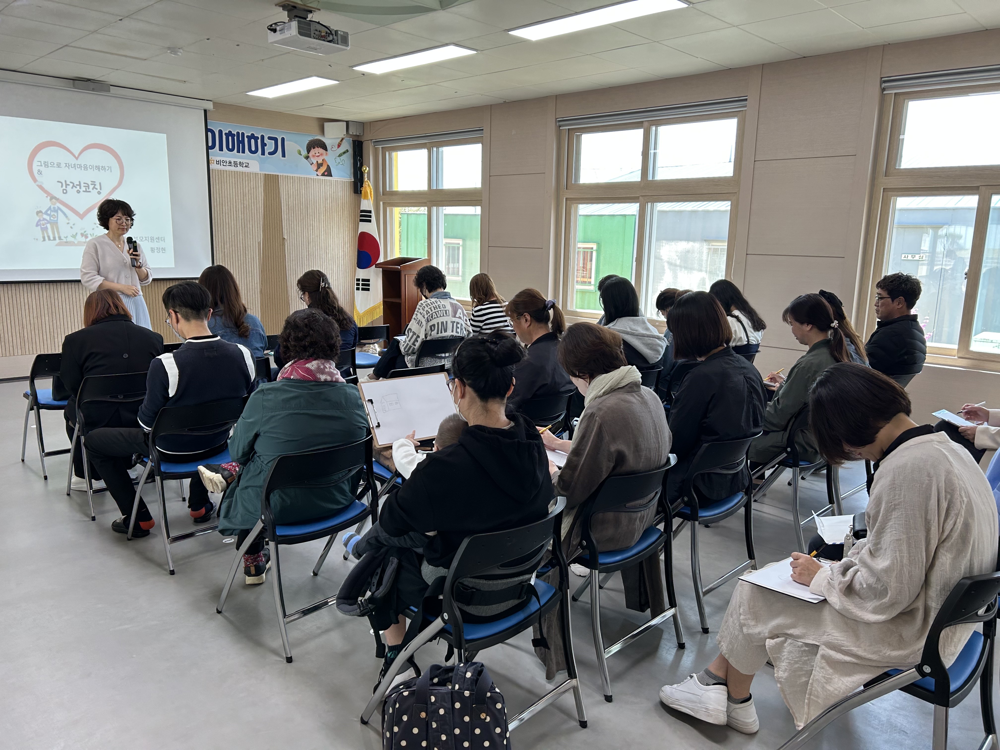 □ 학부모들은 직접 그림을 그려보고 해석을 들으며 그림을 통해 자녀 마음을 들여다보는 방법을 배우는 시간을 가졌다. 경상북도교육청 유튜브 맛쿨멋쿨TV에서는 학부모 교실에 참여하는 학부모들의 모습을 담기도 했다. 감정코칭 방법, 가족 구성원들과 가까워질 수 있는 대화법 등을 배우며 자녀 교육에 대한 비슷한 고민들을 나누고 함께 생각해보는 뜻깊은 시간을 가졌다.