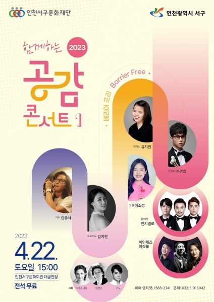 [금요저널] 서구문화재단이 장애인의 날을 맞아 장애인과 비장애인이 예술로 소통하고 모두가 함께 문화예술을 즐기는 ‘2023 함께하는 공감 콘서트 1 – 배리어프리 콘서트’를 서구문화회관 대공연장에서 오는 22일 개최한다.