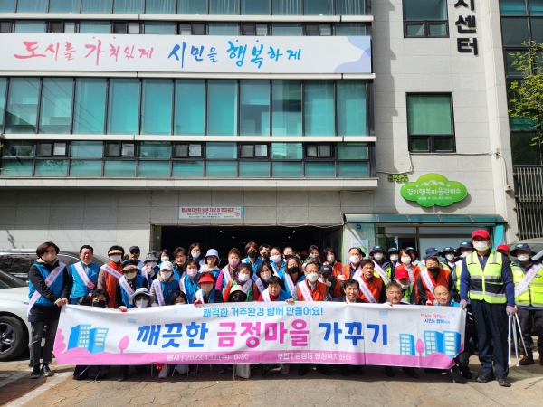 [금요저널] 군포시 금정동에서는 4월 12일 직능단체 회원 및 지역주민, 공무원 등 80여명이 참여한 가운데 “깨끗한 금정마을 가꾸기” 활동을 전개했다.