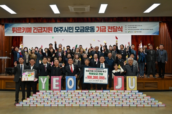 이번에 전달한 성금은 지난 3월 6일부터 4월 7일까지 진행된 ‘튀르키예 긴급지원 여주시민 모금운동’에 여주시민 1만여명과 기업, 사회단체, 종교, 교육기관 등 88개 단체가 동참해 모아졌다.