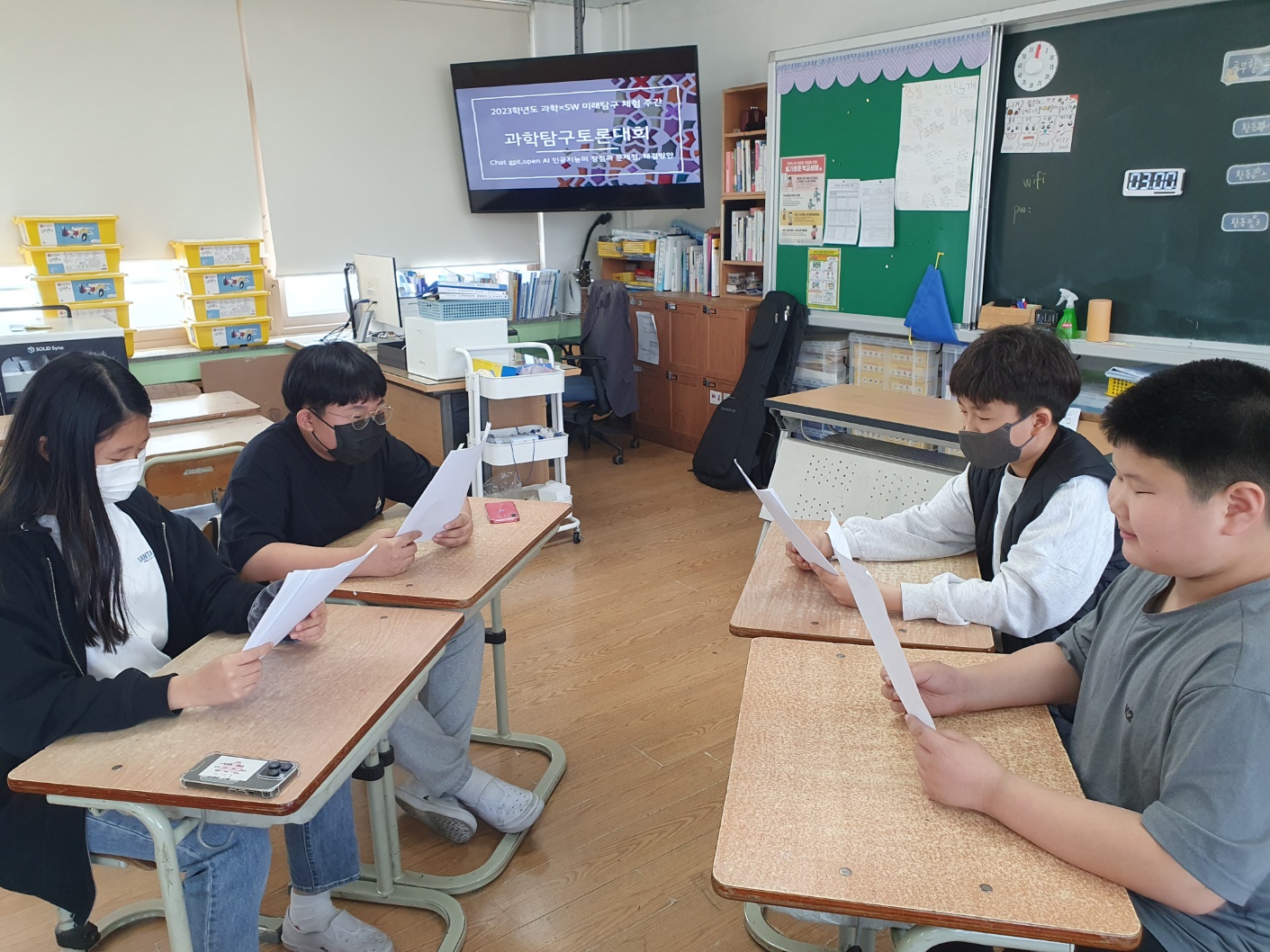 과학탐구토론은 인공지능 및 챗GPT 장단점에 대하여 학생들이 의견을 나누는 문제로 진행되었다.