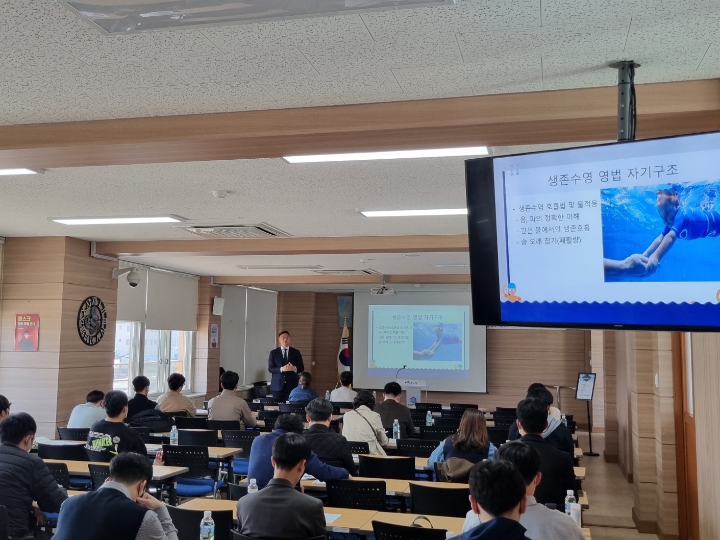 □ 이번 연수는 박정호 강사를 초빙해 생존수영에 대한 이해와 자기구조, 실습 안전에 대한 원리와 방법을 강조한 이론교육, 생존수영 실습에서 안전사고 발생 시 행동 요령 등 초등학생 자기구조 및 생존 뜨기 지도법에 대해 연수를 집중적으로 진행했다.