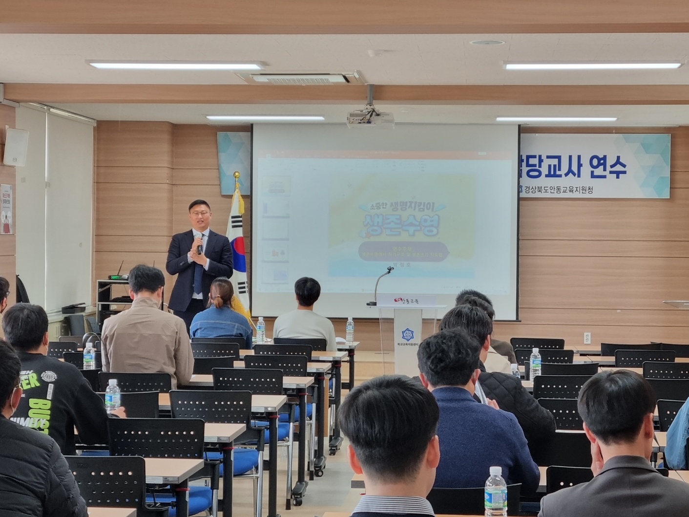 □ 경상북도안동교육지원청(교육장 이순호)은 4월 12일(수) 관내 초등학교 생존수영 업무 담당 교사들이 참석한 가운데 초등생존수영 실기 연수를 시행했다.