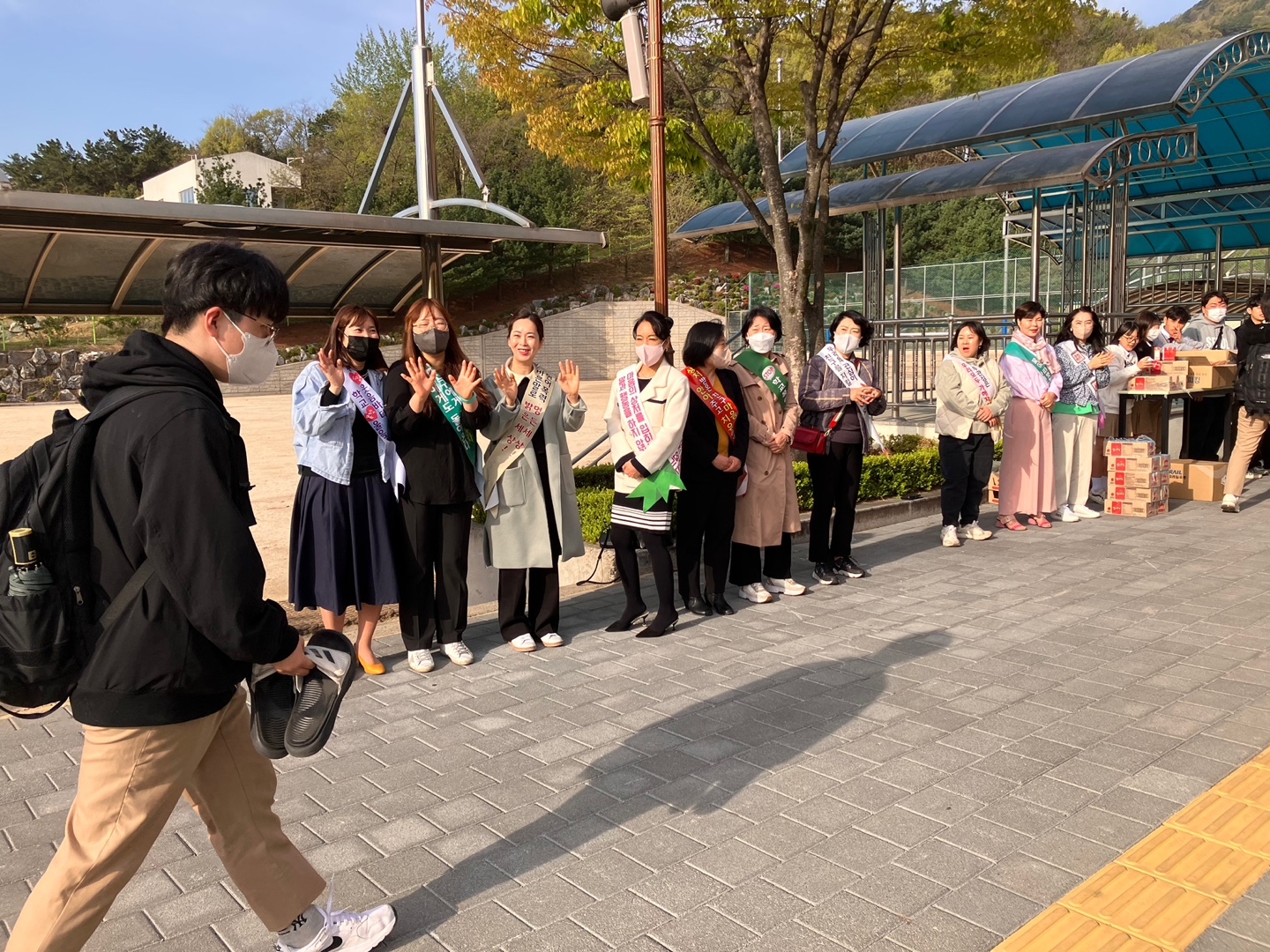 □ 학생자치회 및 교직원과 학부모가 모두 동참하여 등교하는 학생들에게 인사를 건네고 간식을 나눠주며 활기찬 등굣길 분위기를 형성하였다. 캠페인에서는 ‘NO폭 공감+나눔’, ‘존중과 배려는 친구 사랑의 시작’ 등 학교폭력 예방의 메시지를 전하면서 힘과 용기를 주는 따뜻한 인사가 오갔다.