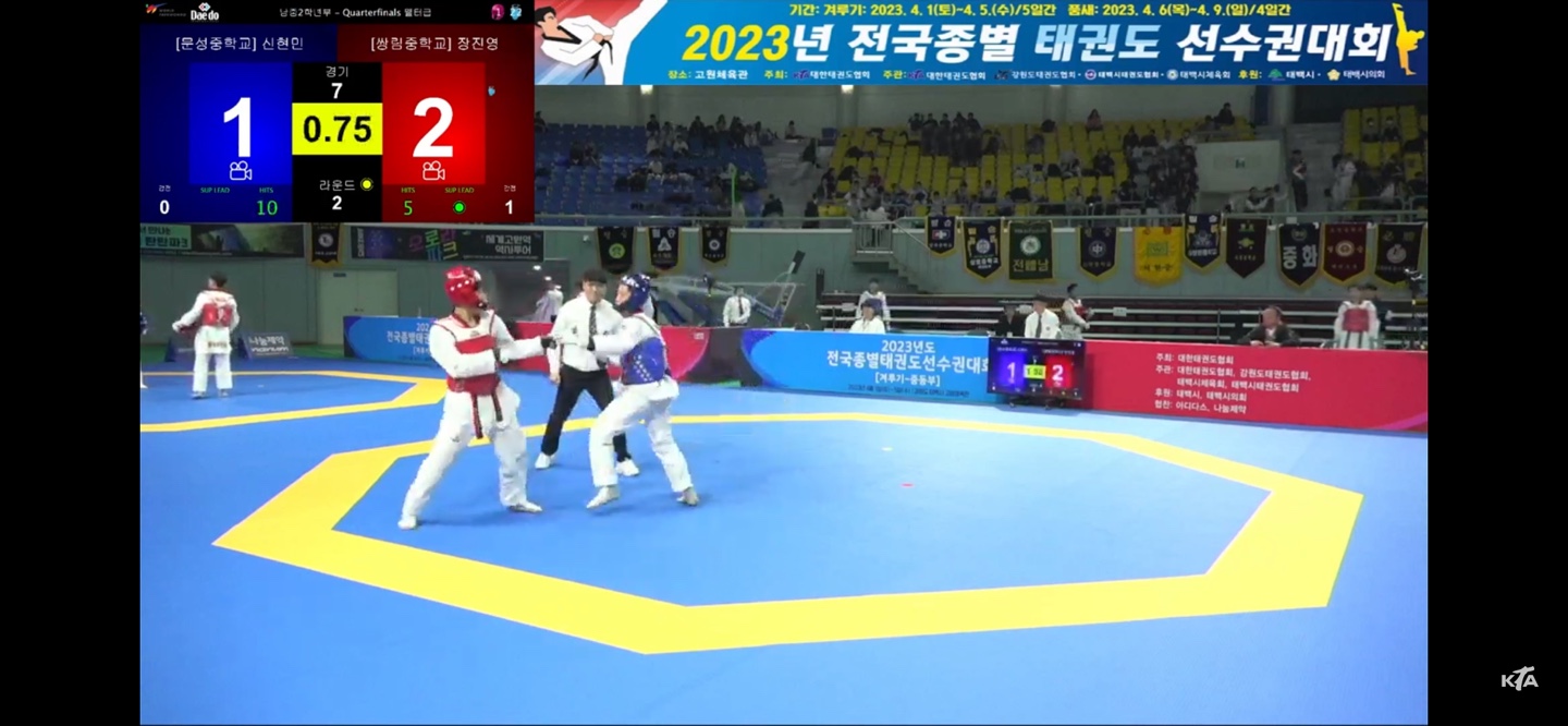 8강에서 서울 문성중학교 선수와의 경기에서 각 1라운드를 승리한 상황에서 3라운드 3:2 스코어로 뒤지고 있던 중, 경기 종료 1초를 앞둔 상황에서 왼발 돌려차기가 성공하여 극적으로 4강에 진출하였다. 결승 진출을 앞둔 4강 경기에서 울산중학교 선수를 상대로 선전하였으나 신장 차이를 극복하지 못하고 아쉽게 패하고 말았다.