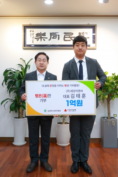 [금요저널] ㈜세강이앤씨 김태훈 대표이사는 17일 남양주시 지역 내 어려운 이웃을 위해 1억원 기부를 약정하며 남양주시복지재단의 평생 기부 프로그램 ‘평온한 기부’에 동참했다.