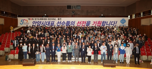 [금요저널] 안양시는 지난 15일 9시 시청 대강당에서 ‘2023년 시장기 종목별 체육대회 통합개회식 및 제69회 경기도 체육대회 출정식’을 갖고 필승 결의를 다졌다.