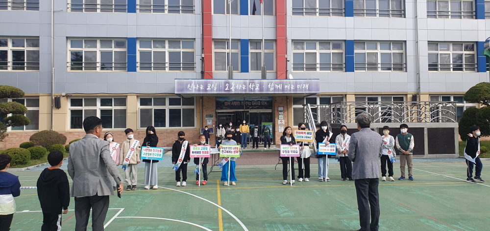 □ 봉화초등학교(교장 장홍식)는 4월 14일 (금)에 친구를 좀 더 사랑하고 학교폭력을 예방하기 위한 캠페인을 학생자치회의 주도로 실시하였다.