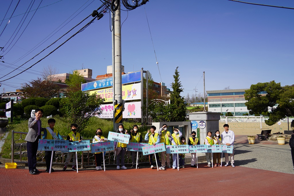 □ 부구초등학교(교장 도영진)는 지난 2023년 4월 10일(월)부터 14일(금)까지 총 5일간 친구사랑주간을 운영하였다. 이번 주간에는 ‘반갑게 인사 데이’, ‘행운의 편지 데이’, ‘친구와 찰칵 데이’등의 세부 행사를 추진하여 학생들로 하여금 친구와의 건전한 교우관계의 중요성을 깨닫고, 학교폭력예방 의식을 함양하도록 하였다.