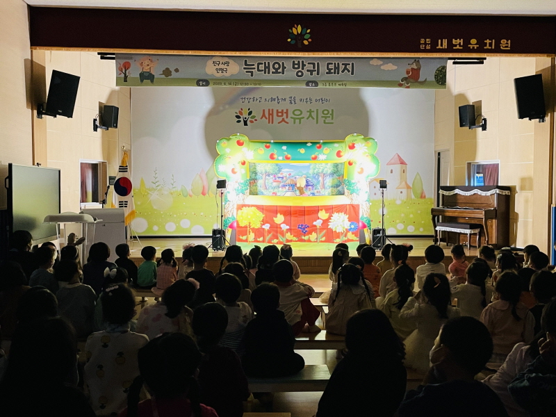 □ 새벗유치원(원장 우수경)은 4월 14일(금) 3층 체육실에서 유아 120명을 대상으로 인형극을 관람했다.