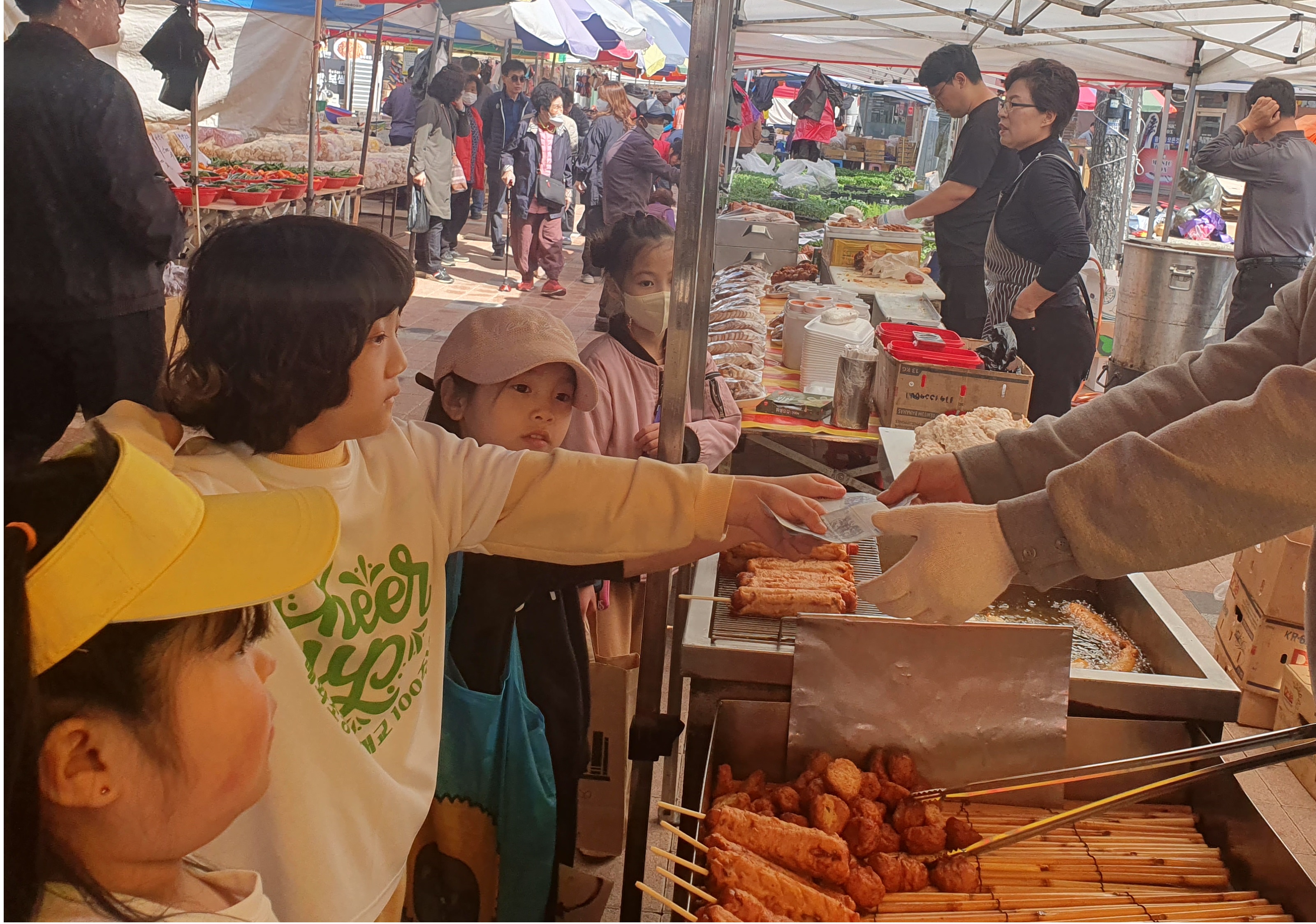 장수빈 학생(4학년)은 “주말 동안 가족회의를 해서 필요한 목록을 미리 적어 왔어요. 빨리 집에 가서 싱싱한 채소들을 가족들과 함께 나누고 싶어요.” 라고 말하였고, 권민준 학생(6학년)은 “대형마트 보다 전통시장이 불편하다고 생각했는데, 학생들이 장보는 것이 기특하다고 칭찬해 주셔서 기분이 좋았고 덤을 많이 챙겨주셔서 감사했어요.” 라고 소감을 전하였다.