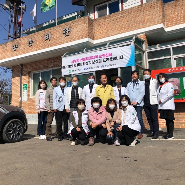 [금요저널] 홍성군 서부면 일원에서 일어난 대형 산불로 다량의 연기와 유독가스에 노출된 피해지역 주민들이 일상생활의 불편함을 겪고 있는 가운데 홍성군보건소가 주민들의 건강을 보살피기 위한 의료봉사에 나섰다.