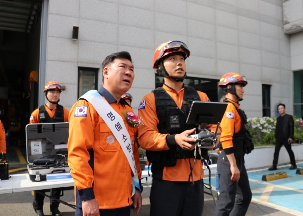 행사는 위촉식을 시작으로 안전체험관 교육체험, 특수차량 및 장비를 활용한 화재진압훈련 참관, 현장출동부서 및 내근 근무자 격려, 현안 업무보고 등으로 진행됐다.