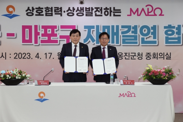 [금요저널] 인천광역시 옹진군과 서울특별시 마포구는 지난 17일 옹진군청 6층 중회의실에서 자매결연 협약을 체결했다고 밝혔다.