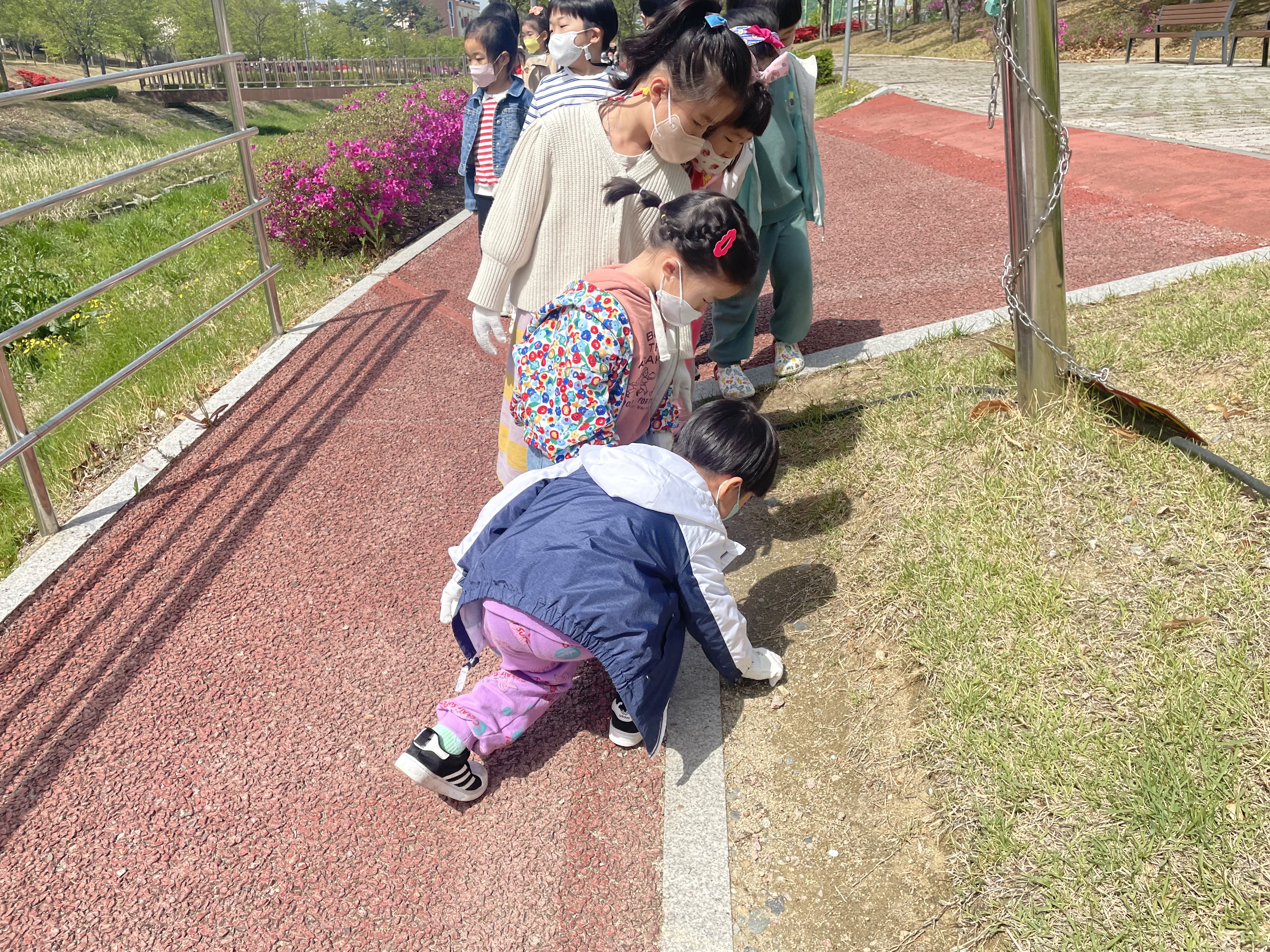 □ 율곡유치원(원장 이미화)은 4월 17일(월)에 전 유아 대상으로 율곡 유치원 주변 및 율곡천에서 자연사랑 캠페인을 실시하였다.