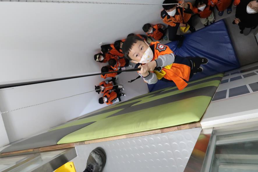 □ 이날 아이들은 9개의 체험존에서 실제로 대피하거나 구조를 요청해 보았다. 완강기 체험도 선생님의 지도에 따라 무서워하지 않고 잘 참여했다. 실제 상황에서 아이들이 익숙하게 대피할 수 있도록 다양한 체험이 마련되어 있는 것이 인상적이었다.