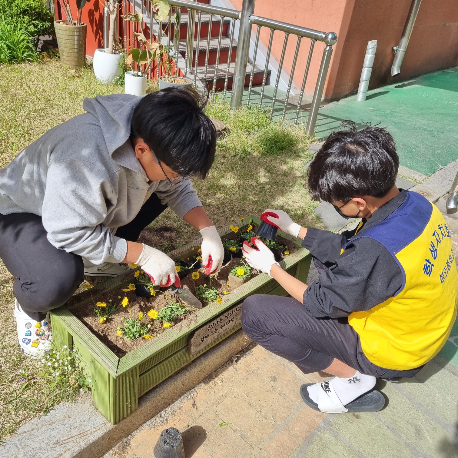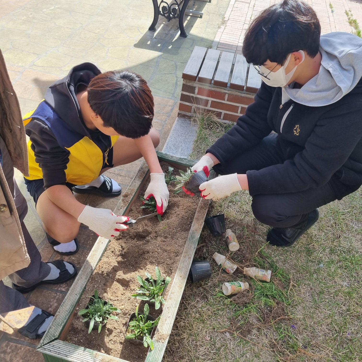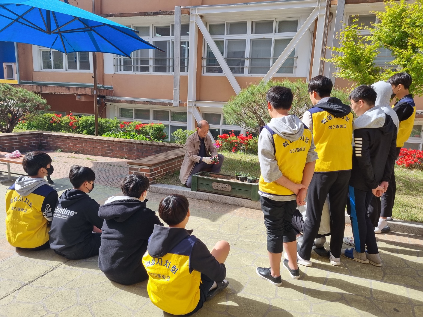 성의중학교(교장 장재원)는 4월 12일(수) 창의적 체험활동 시간을 활용해 교직원과 학생이 동참하는 학교 가꾸기 행사를 실시했다. 학생 대표들과 교직원이 참여해 화분에 아름다운 꽃을 심어 학교 건물 주변을 장식했다.