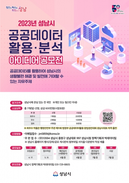 [금요저널] 성남시는 오는 5월 31일까지 전 국민을 대상으로 공공데이터 활용·분석 아이디어를 공모한다.