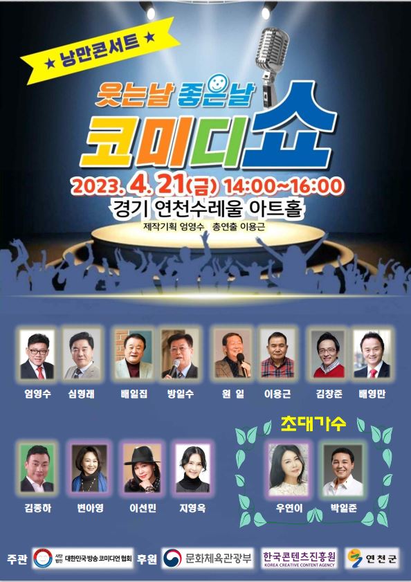 [금요저널] 연천군은 오는 21일 오후 2시 연천수레울아트홀 대공연장에서 ‘웃는날 좋은날 코미디쇼’를 선보인다.