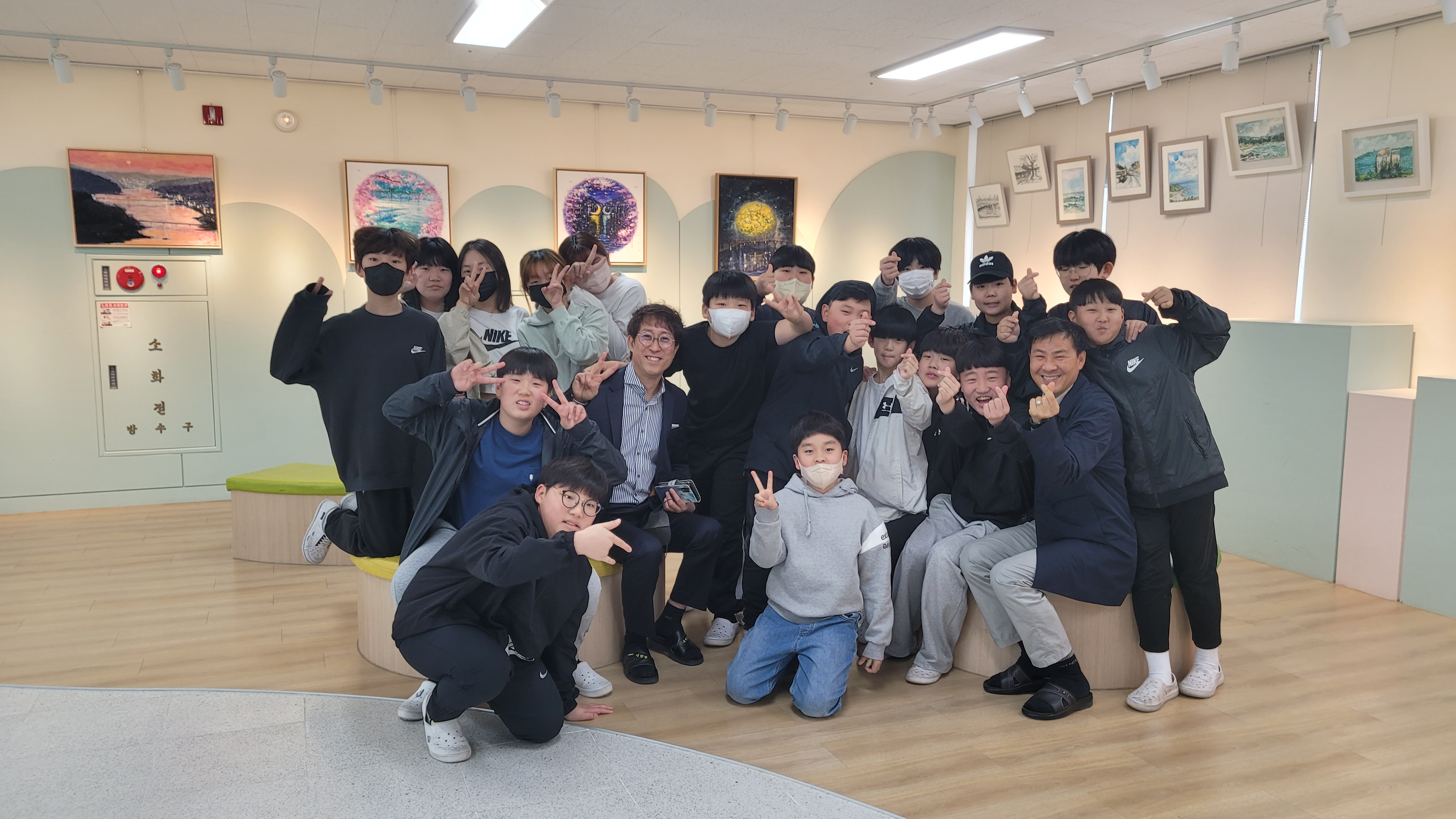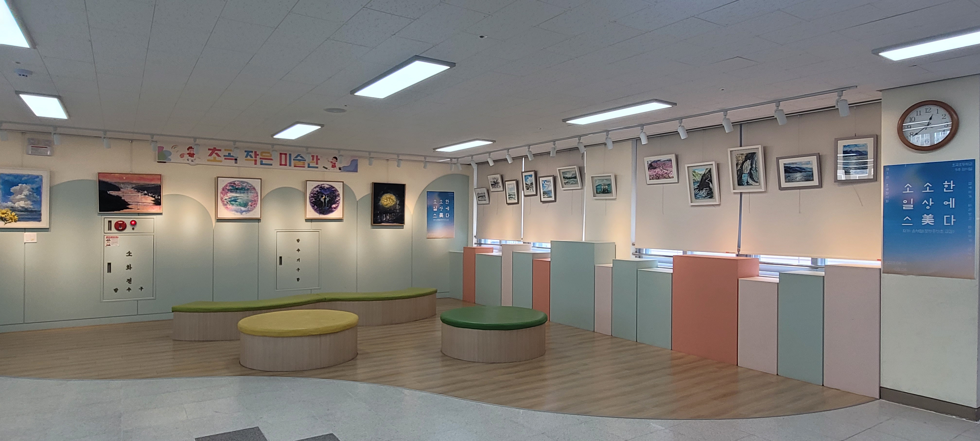 학교 내 작은 미술관 활용 방안을 고민하던 중 포항 지역 인사의 작품을 전시하자는 아이디어가 나와 ‘소소한 일상에 스美다’를 주제로 올해 초에 경상북도교육청문화원에서 전시한 윤형철 작가의 작품을 초청 전시하게 되었다.