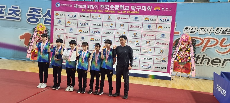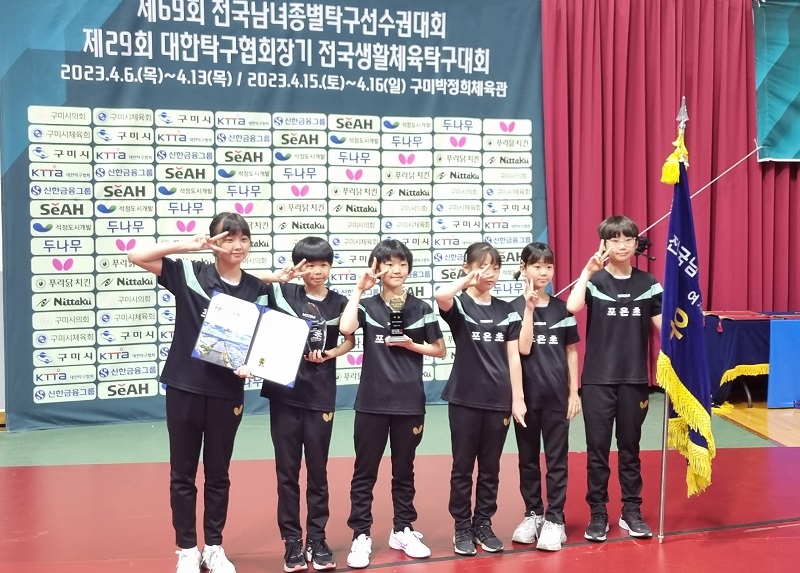 포은초등학교(교장 심선자) 탁구부 학생선수들은 4월6일(목)~4월11일(화) 경북 구미박정희 체육관에서 열린 제69회 전국남녀종별 탁구선수권대회에 출전하여 단체전 우승, 개인복식 준우승, 개인단식 준우승, 3위의 우수한 성적을 거두었다. 그리고 4월12일(수)~4월16일(일) 경북 김천실내체육관에서 열린 제 49회 회장기 전국초등학교 탁구대회에 출전하여 단체전 3위, 개인단식(5학년부) 우승의 우수한 성적을 거두었다.
