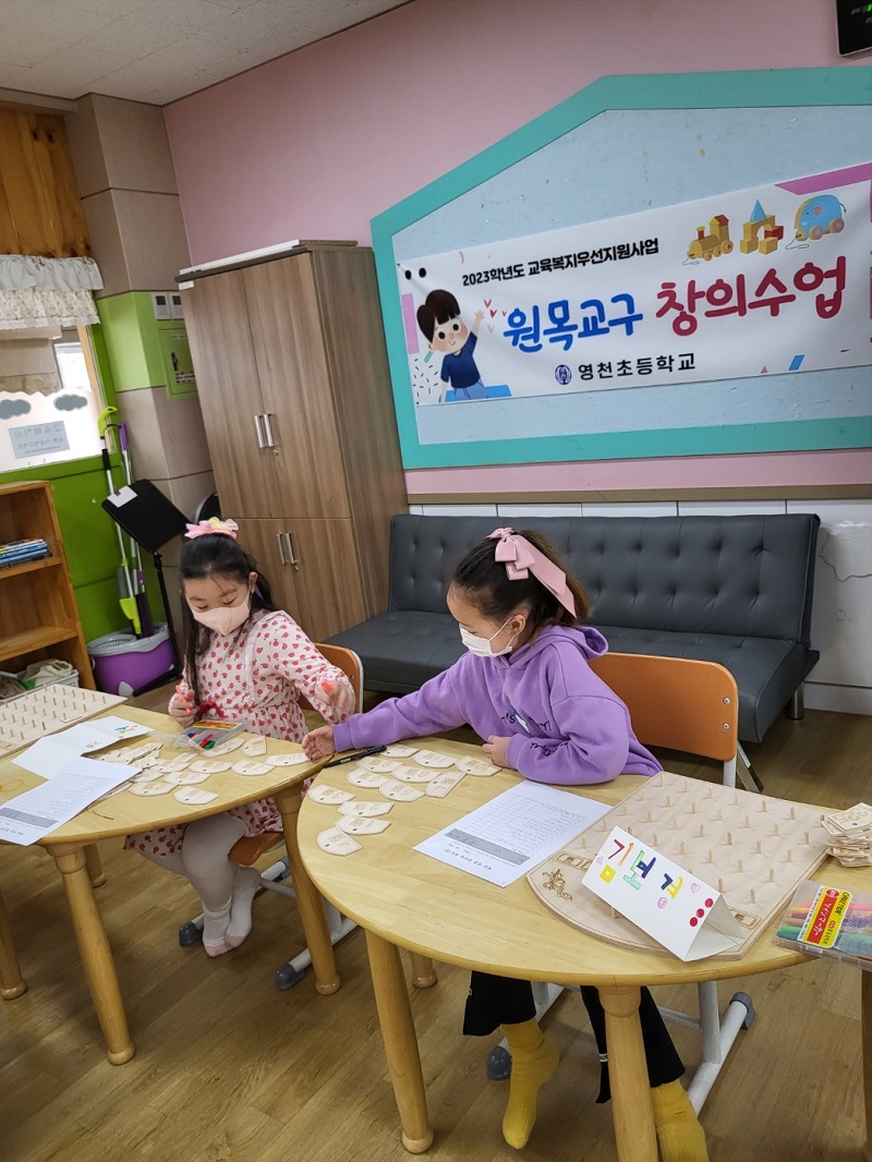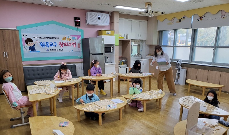 □ 영천초등학교(교장 박성원)는 교육복지우선지원사업의 일환으로 4월에서 6월 1~2학년 학생을 대상으로 총 8회기에 걸쳐‘원목교구 창의수업’프로그램을 운영한다.