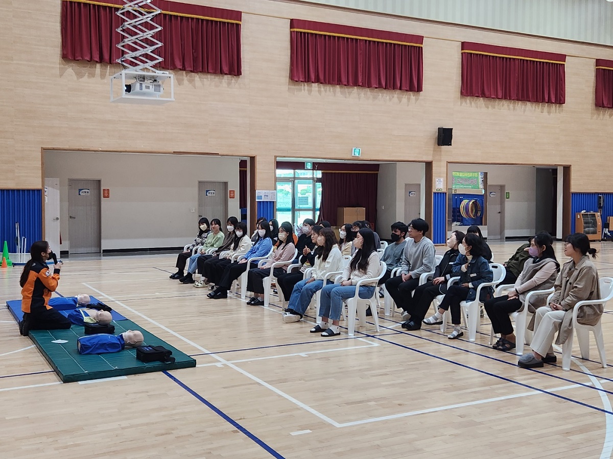 - 이번 교육 활동에서는 청송소방서 소속 전문강사를 초청해 4분 골든 타임의 중요성, 심폐소생술 및 각종 응급환자 사례별 대처 방법, 자동제세동기 사용법, 디지털 애니 인형으로 정확한 위치의 압박 및 속도를 점검하면서 심폐소생술을 실습했다.