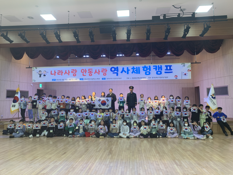 - 4학년 학생 181명을 대상으로 경상북도독립운동기념관에서 실시되는 나라사랑안동사랑 역사체험캠프는 안동의 역사와 안동 출신의 대표적인 독립운동가들을 살펴보고 그들의 발자취를 느껴보며 건전한 역사의식을 함양하는 프로그램이다.
