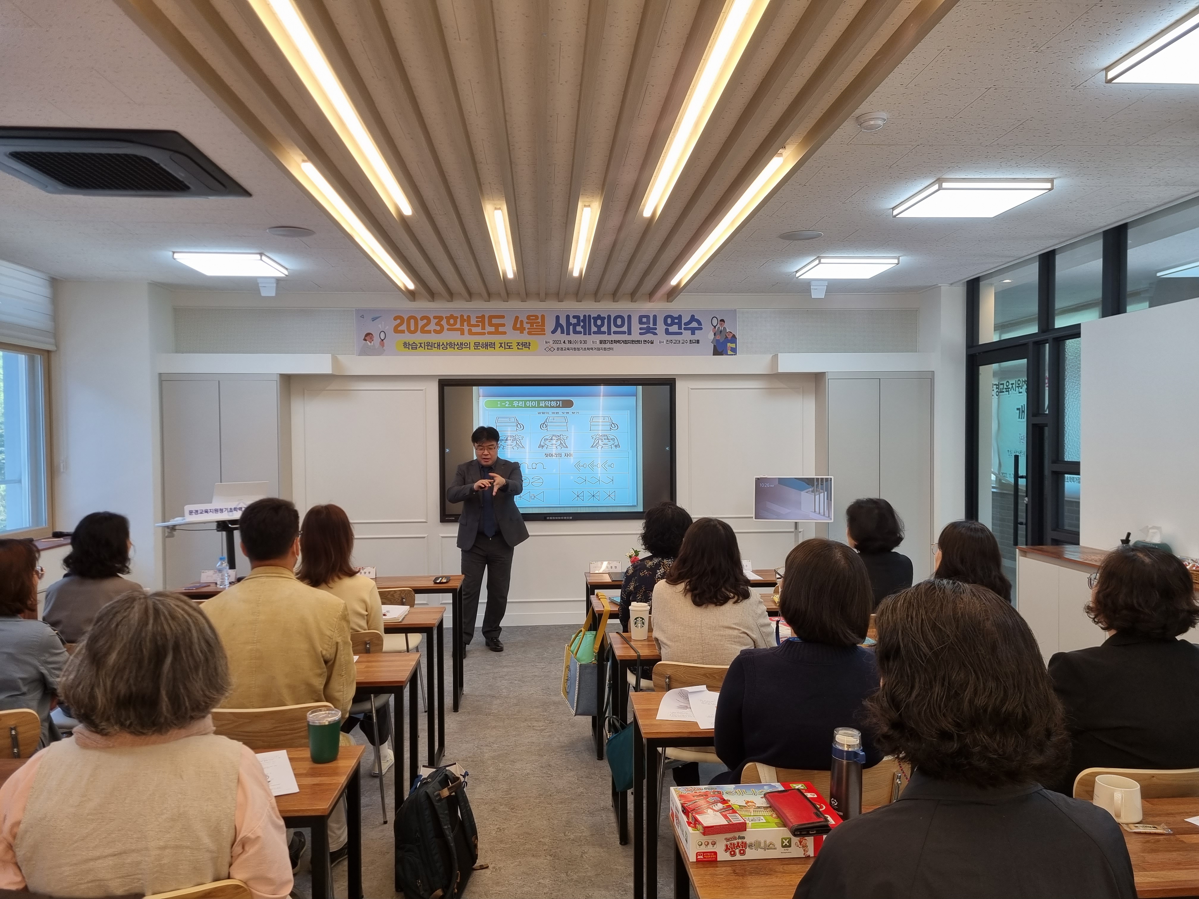 □ 이번 연수는 진주교육대 최규홍 교수를 모시고, ‘학습지원대상학생들의 문해력 지도 전략’이라는 주제로 열렸다. 특히, 한글 해독 지도 전략, 유창성 향상 지도 전략, 어휘력 지도 전략 등 읽기 지도에 유용한 지도 전략을 배우는 시간을 가졌다.