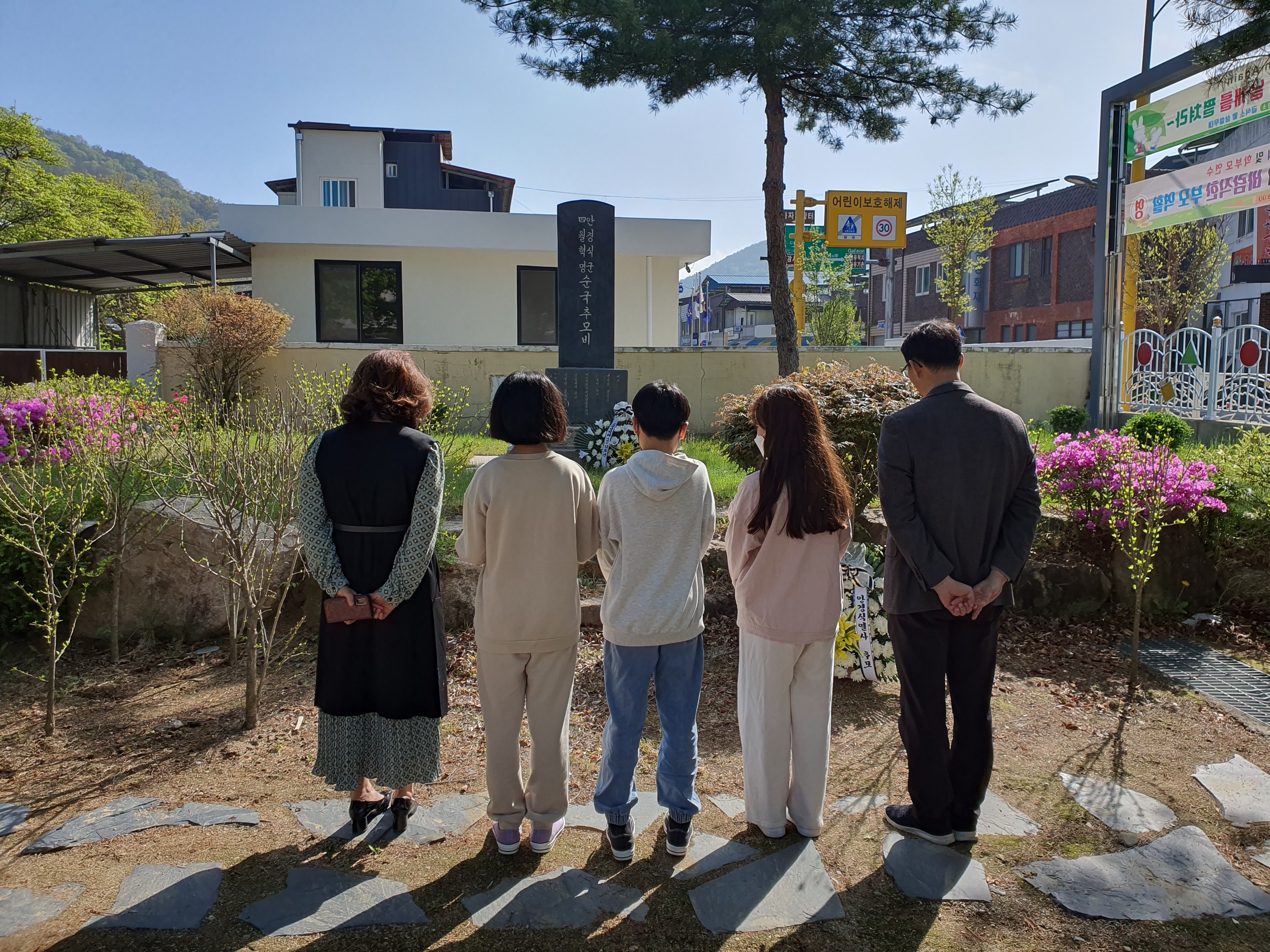 □ 가은초등학교(교장 최을희)는 4월 19일(수) 4·19혁명 63주년을 맞이하여 교내에 있는 四월혁명 안경식군 순국추모비 앞에서 전교학생회 임원들이 대표로 4·19혁명 기념 및 추모식을 거행하였다.