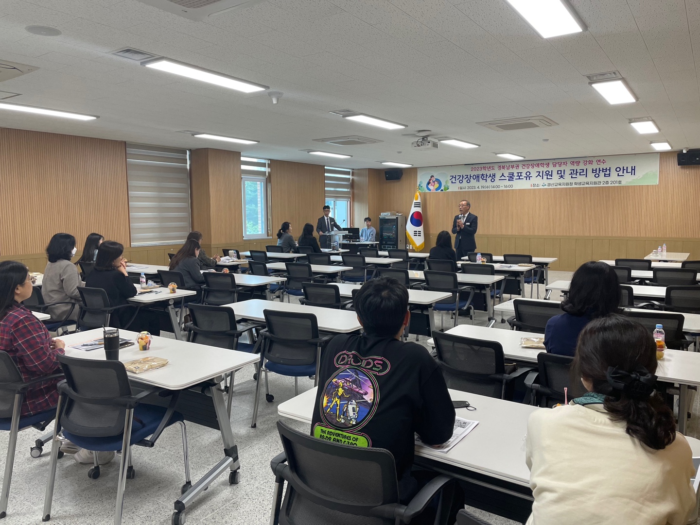 □ 경산교육지원청(교육장 이양균) 특수교육지원센터는 4월 19일 학생교육지원관에서 경북 남부권(경산,영천,군위,의성,청도) 건강장애학생이 배치된 소속학교 담임교사와 업무 담당교사 30여명을 대상으로 ‘2023학년도 경북 남부권 건강장애학생 담당교사 역량강화 연수회’를 개최하였다.