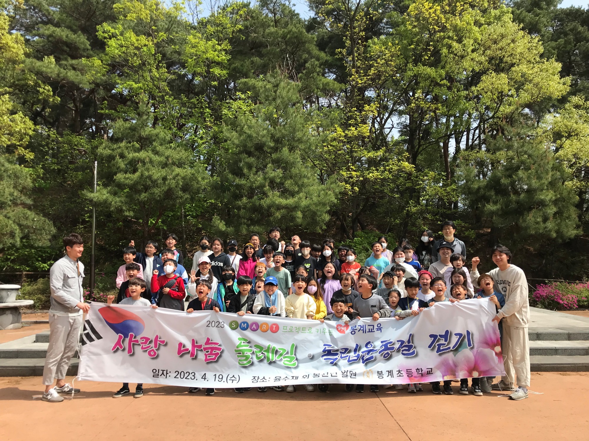 □ 봉계초등학교(교장 최명숙)은 4월 19일(수) 어울림 교육주간 유치원, 본·분교 전교생 85명이 봉산면 일원에서‘사랑 나눔 둘레길 걷기’를 실시하였다.