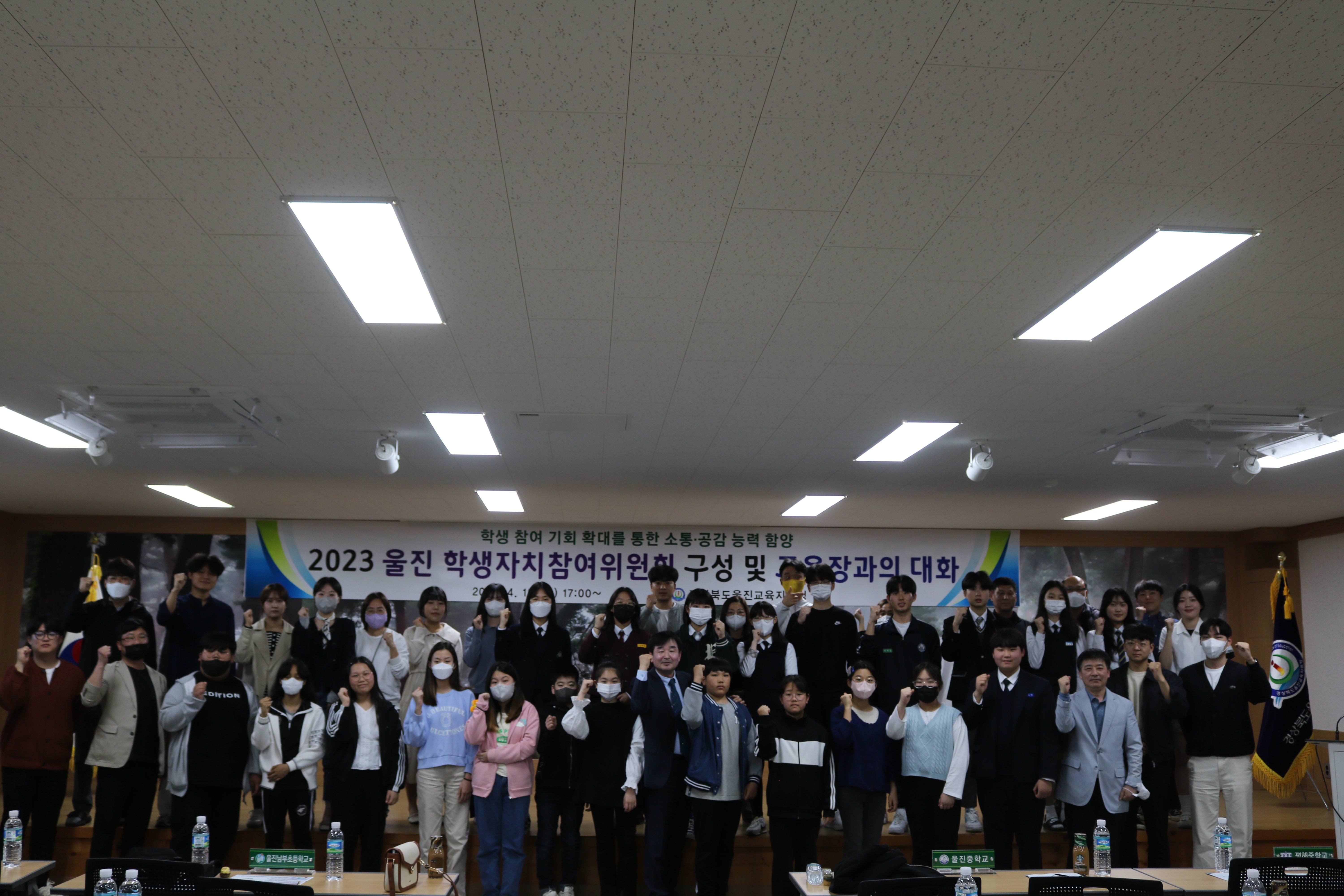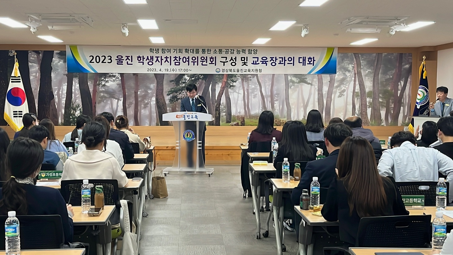 □ 경상북도울진교육지원청(교육장 황석수)은 4월 19일(수), 울진교육지원청 3층 대회의실에서‘2023년 울진 학생자치참여위원회 구성 및 교육장과의 대화’의 시간을 가졌다.